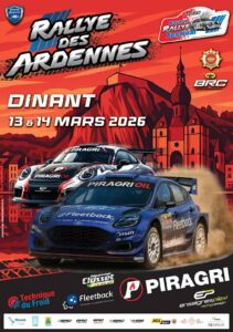13 & 14 mars 2026 – Rallye des Ardennes (Dinant) Règlement & Engagement : Disponible le 15/01/2026 Billetterie : Disponible le 15/01/2026